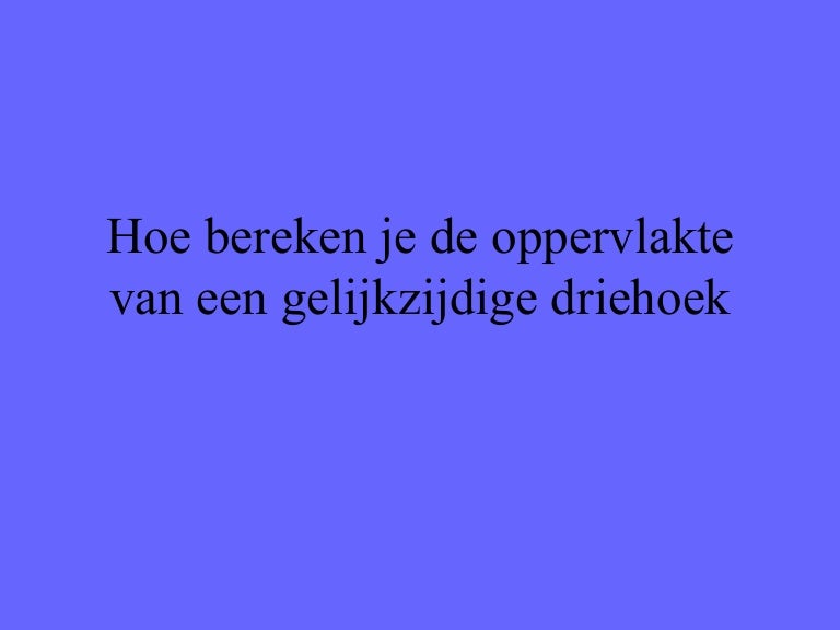 Gelijkzijdige driehoek= zijde x bbh x 1/2.