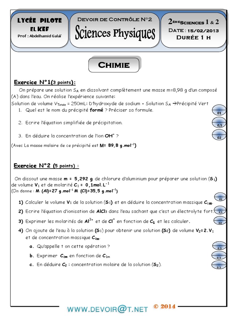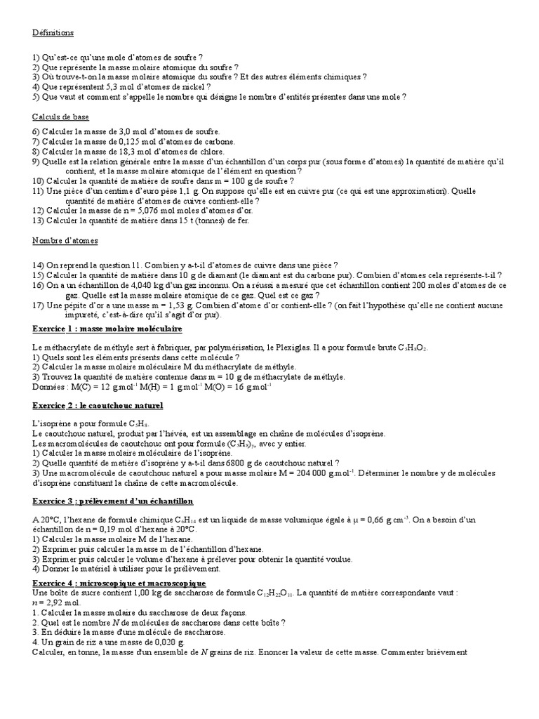 Devoir De Controle N 2 Lycee Pilote Physique 2eme Sciences 2012 2013 Mr Galai Abdelhamid Pdf Transformateur Electrique Chimie from imgv2-2-f.scribdassets.com Many common preparatory sources use g/mol and effectively define it as a synonym of molar mass, while more authoritative sources use da or u and align its definition more closely with the molecular mass. Tapez le nombre de gramme par mole (g/mol) que vous souhaitez convertir dans la zone de texte, pour voir les résultats dans le tableau. Thus, the water vapor atom has an molar mass of 18 g/mol, and water vapor is lighter than o2 with 32 g/mol and n2 with 28 g/mol.