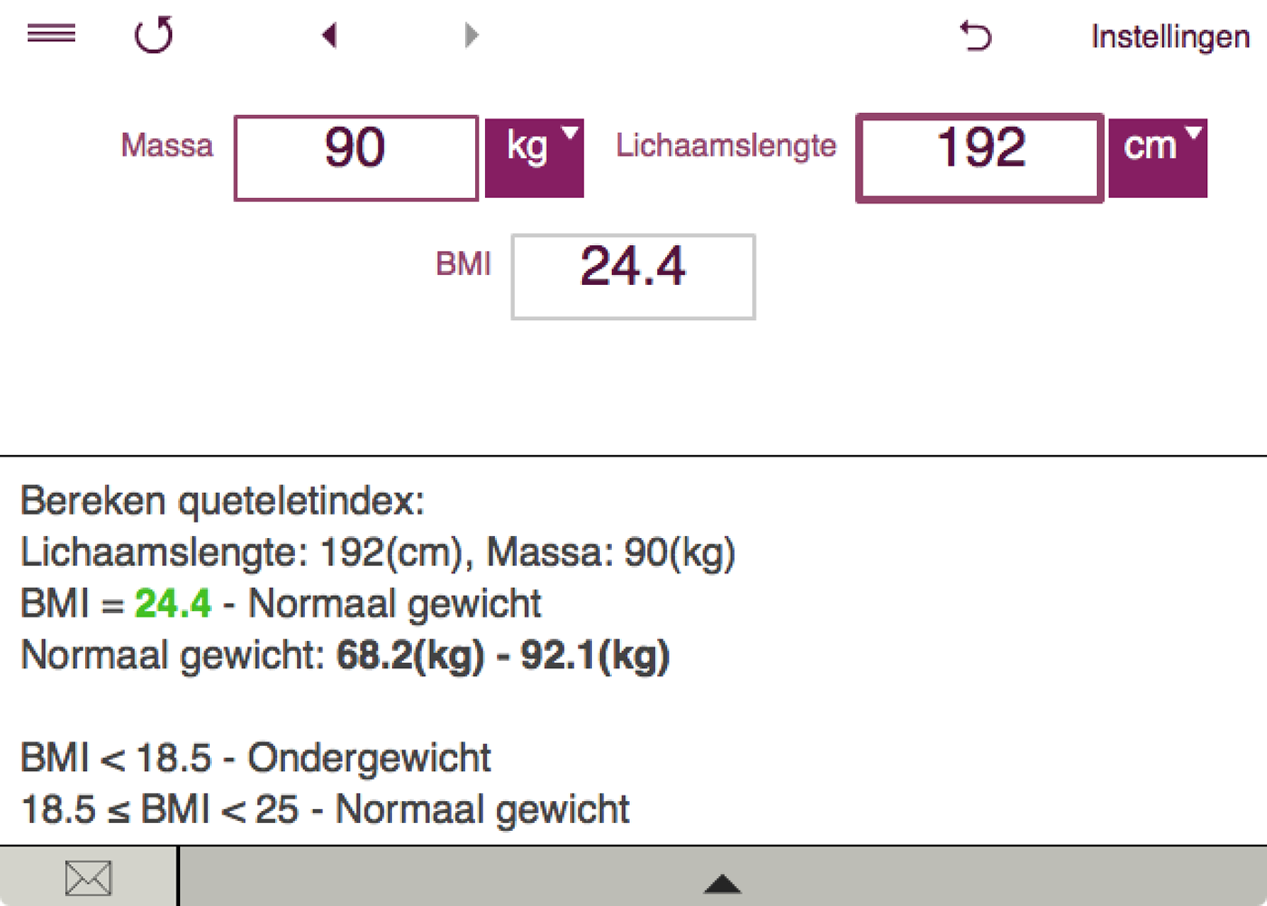 Als voorbeeld voor het berekenen bmi gebruiken we de volgende bmi formule voor een persoon met een lengte van 1.76 meter en een gewicht van 90 kilo.