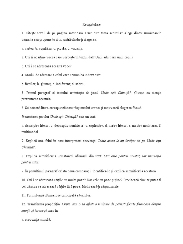 Scrie planul de idei principale şi secundare; Elevii citesc un paragraf în gând (numărul paragrafelor trebuie să corespundă cu numărul elevilor din grup); Un paragraf este dezvoltarea unei idei principale in mai multe fraze, iar paragraful se scrie cu alineat. Cuvintele aduceam,am aflat,cantai,vazusem sunt forme verbale la modul indicativ, timpul trecut.ad.