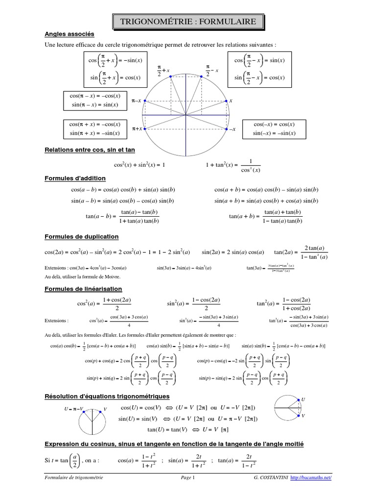 Formules D'euler. Formules de moivre et d'euler. Ne doit pas être confondue avec d'autres formules dues à euler, comme celle concernant les graphes planaires.