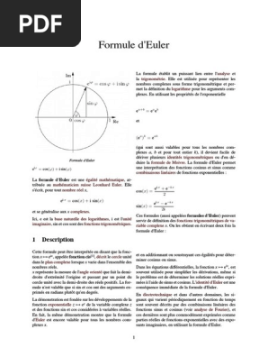 Formule d'euler la formule d'euler, attribuée au mathématicien suisse leonhard euler, s'écrit pour tout nombre réel x, ici, e est la base naturelle des logarithmes, i est le. Equations du second degré à coefficients réels. Many theorems in mathematics are important enough that they have been proved repeatedly in this page lists proofs of the euler formula: Dans le plan complexe, la formule d'euler relie l'exponentielle complexe avec le cosinus et le sinus :