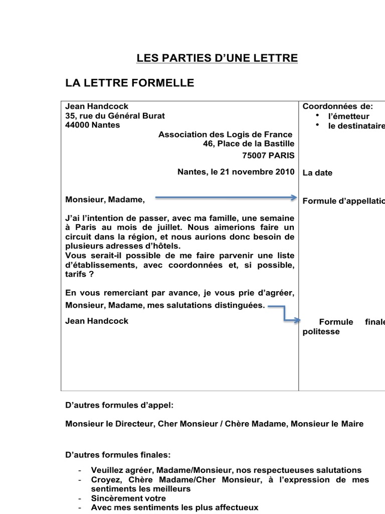 Formule D'appel Lettre Formelle. Dans la correspondance écrite il est d'abord question d'identifier le destinataire du courrier dans le cas d'une lettre formelle les conventions à respecter sont plus complexes que dans le cas d'une lettre objet de la lettre en dessous des coordonnées du destinataire. Cette formule, qui varie selon le destinataire, figure contre la marge de gauche.